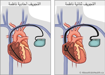 تأتي اجهزة تنظيم ضربات القلب في ماركات وموديلات مختلفة. ان طبيب طفلك هو الذي سيقرر اي نوع من جهاز تنظيم ضربات القلب يجب ان يكون لطفلك. لمزيد من المعلومات حول جهاز تنظيم ضربات القلب، يمكنك التحدث الى الطبيب او موظفي عيادة اجهزة تنظيم ضربات القلب.