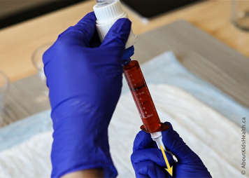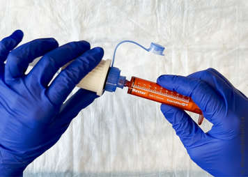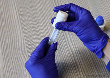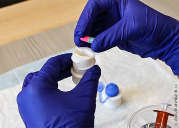 Next put on the gloves and open the medicine bottle and remove a capsule. Put the lid back on the bottle as soon as possible.