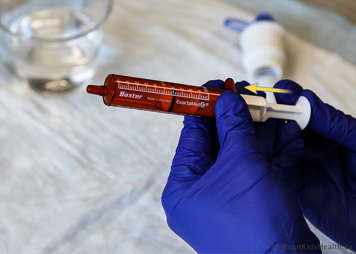 While waiting, make sure the plunger of the oral syringe is pushed all the way in. Once the solution is ready, use it right away. You may see bits of the capsule floating in the liquid, this is OK, they will not fit into the syringe.